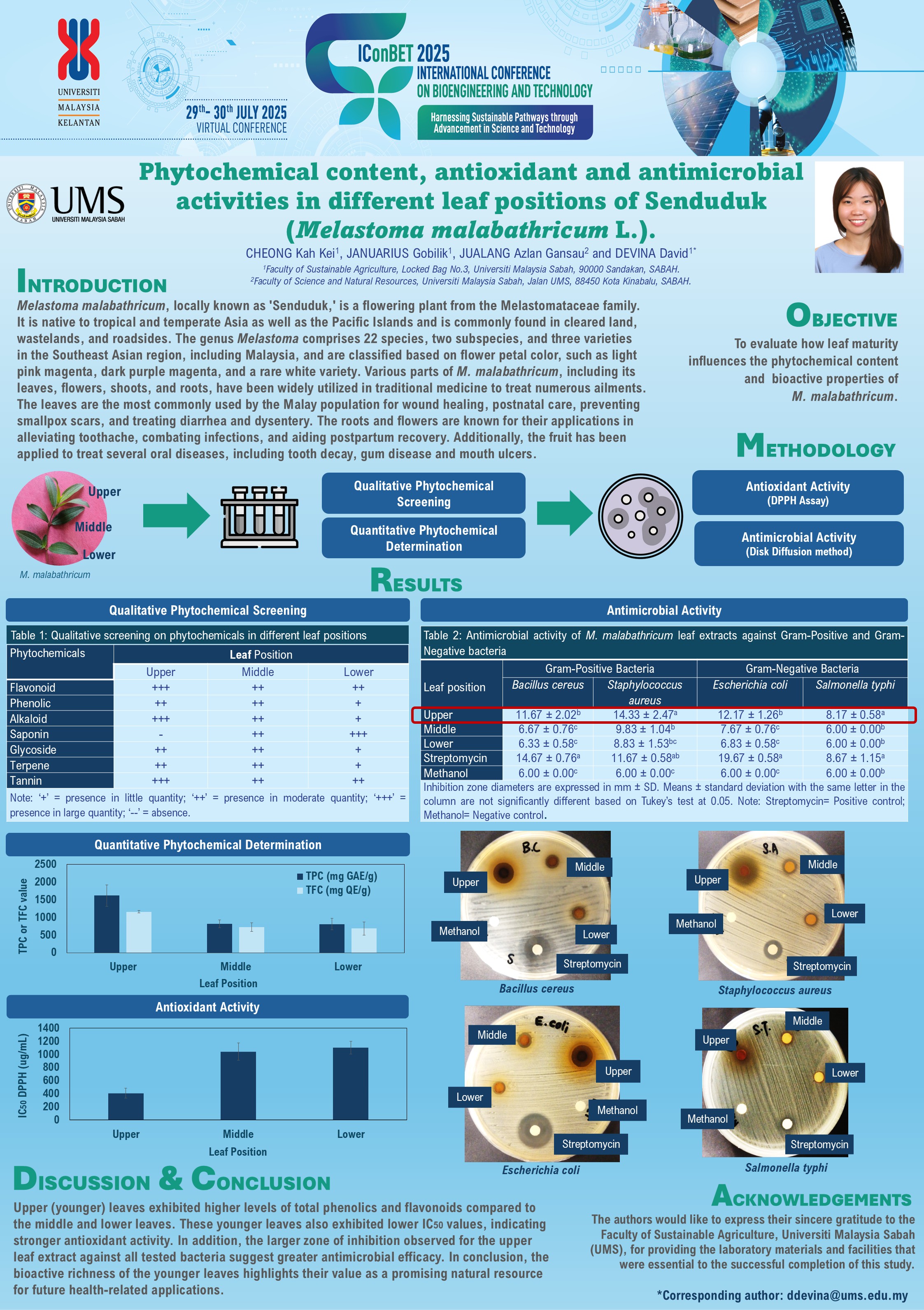 | 3:00 – 3:15 PM | UMS03 Dr. Nur Zaida Zahari Assessing the Potential of Tenebrio molitor for Biodepolymerization of Plastic Waste [Show Abstract] |